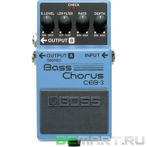 Эта хорус педаль BOSS CEB-3 Bass Chorus специально приспособлена для электро-бас-гитары. Эффект добавляет пространственного богатства в верхнем частотном диапазоне, в то же время не загрязняя низкочастотный сигнал не замутняя атаку. Частота эффекта управляется при помощи ручки low filter.