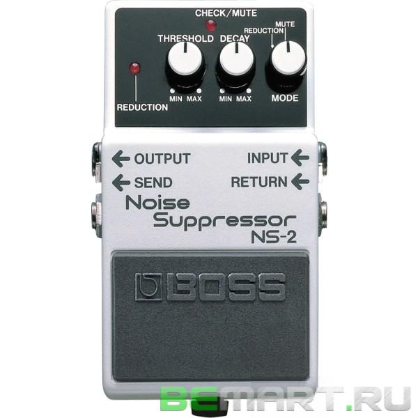 Шумоподавитель BOSS NS-2 Noise Suppressor. Убирает шумы без искажения тона. Может так же питать другие педали. Подавляет нежелательные шумы и гудение, не изменяя при этом полезный сигнал. Специальная схема обнаружения шумов сохраняет первоначальными атаку сигнала и его огибающую, таким образом оставляя нетронутыми натуральное звучание и динамику исполнения.
