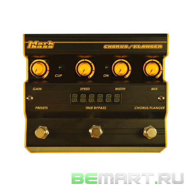 Педаль сочетает в себе воздушный Сhorus и психоделический Flanger. Скорость и ширина модуляции настраиваются при помоши контроллеров Speed и Width. Контроллер MIX позволяет аккуратно подмешивать эффекты в чистый звук. Параметры пресетов педали могут быть отредактированы на компьютере с помощью утилиты Markbass Pedal Controller, для этого Chorus Flanger подключается к нему по интерфейсу USB. В режиме True Bypass сигнал проходит со входного разъема педали на выходной без искажений.