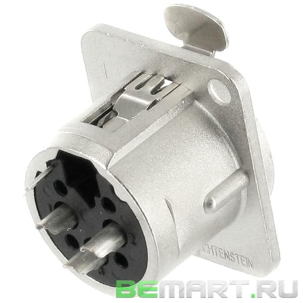 Neutrik NC3FD-L-1 - это панельный 3-контактный разъем XLR D-типа. Данный типоразмер является самым распространенным, и такие разъемы могут быть установлены как снаружи, так и изнутри приборной панели. Они имеют кольцевидный фланец на передней части, диаметр которого равен диаметру задней контактной части разъема.