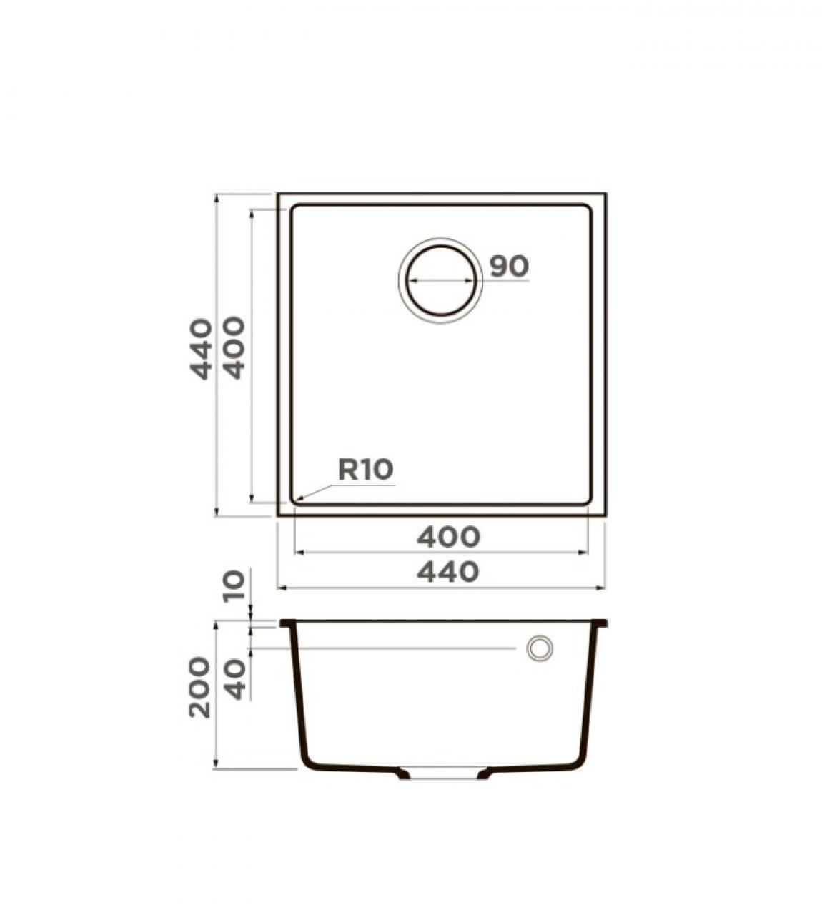 Размер мойки: 440х440 мм