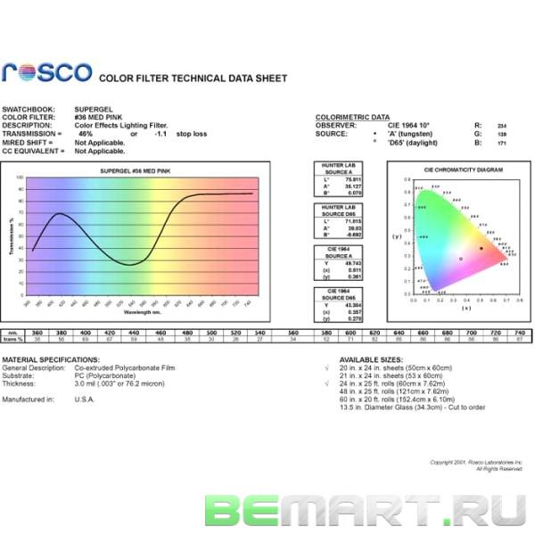 ROSCO Supergel 36 Светофильтр пленочный, размер 61х50см, цвет: Medium Pink